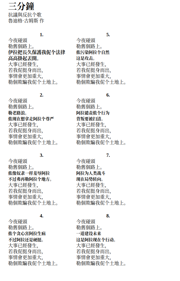 Protest song "Three Minutes"