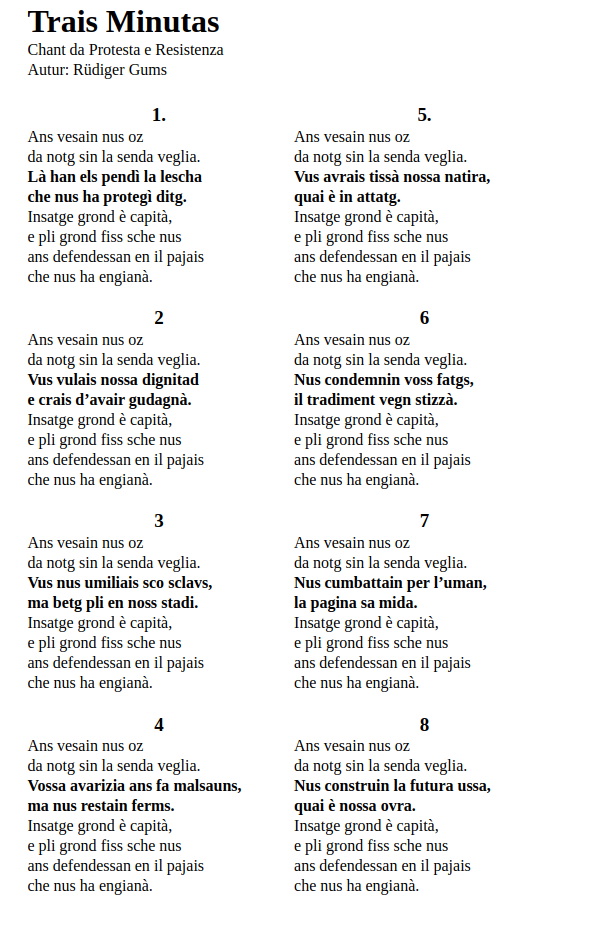 | 1 | Englisch 𝅘𝅥𝅮 | 2 | Deutsch 𝅘𝅥𝅮 |